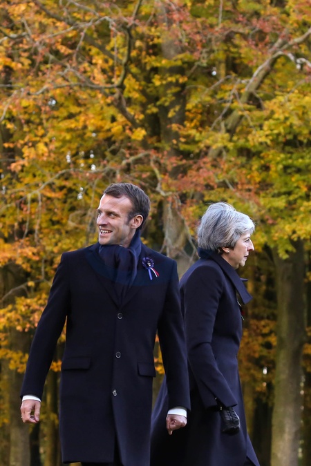 Emmanuel Macron i Theresa May w rocznice zakonczenia I wojny swiatowej