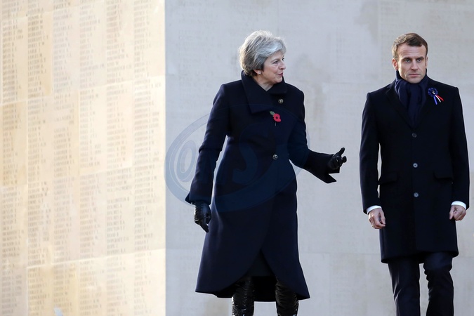 Emmanuel Macron i Theresa May w rocznice zakonczenia I wojny swiatowej