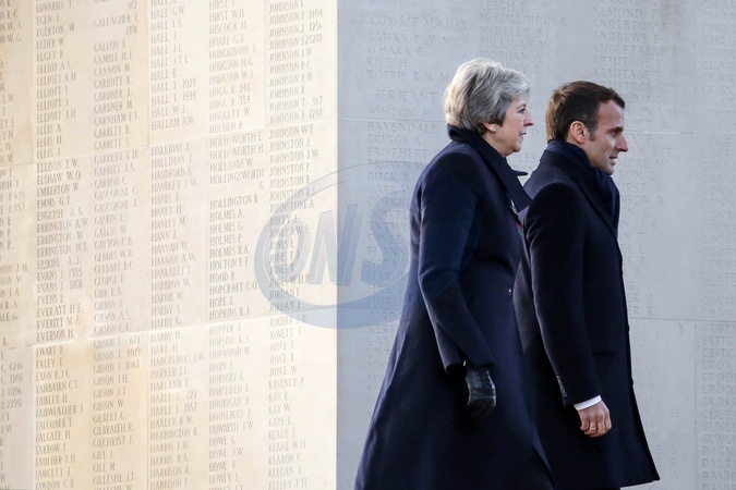 Emmanuel Macron i Theresa May w rocznice zakonczenia I wojny swiatowej