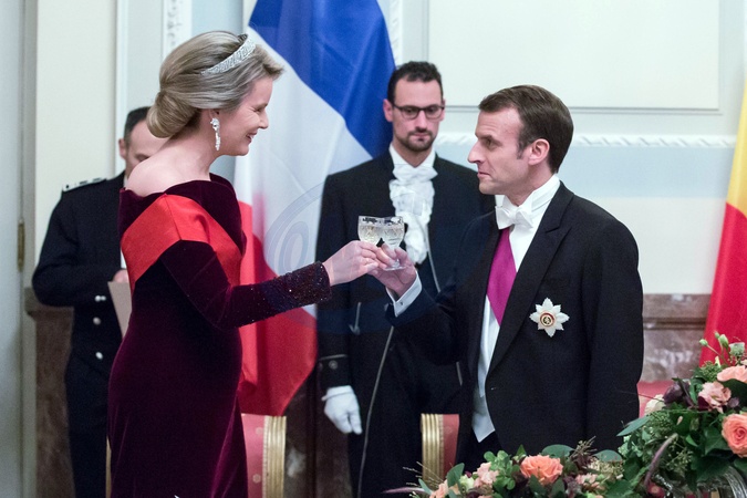 Macronowie na bankiecie u pary krolewskiej Belgii