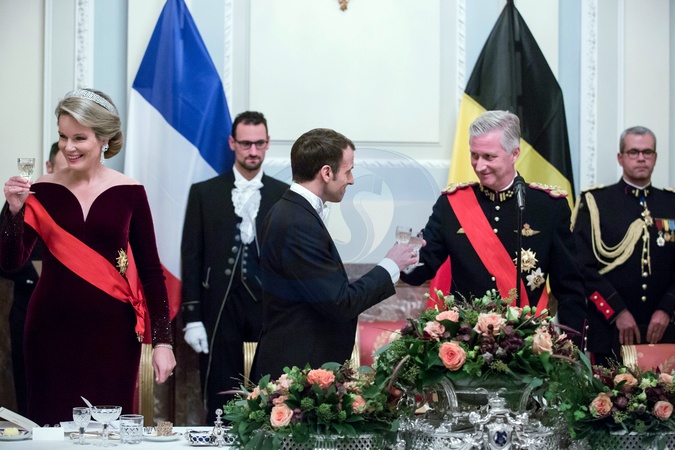 Macronowie na bankiecie u pary krolewskiej Belgii