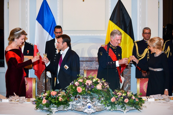 Macronowie na bankiecie u pary krolewskiej Belgii