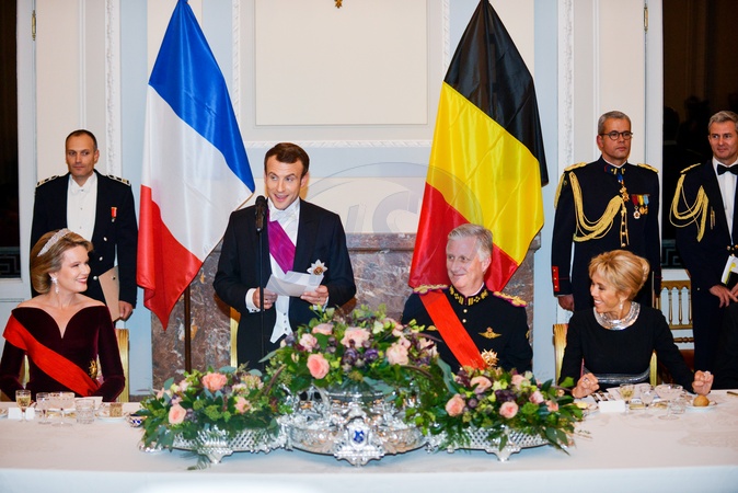 Macronowie na bankiecie u pary krolewskiej Belgii