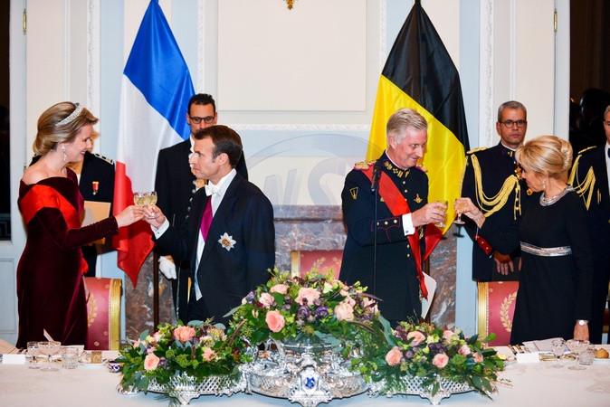 Macronowie na bankiecie u pary krolewskiej Belgii