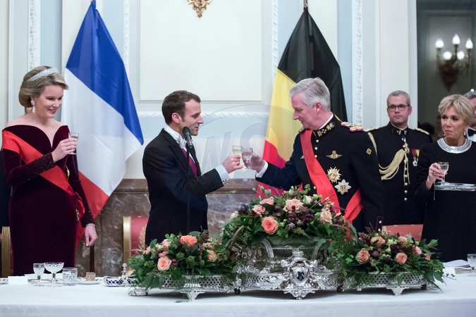 Macronowie na bankiecie u pary krolewskiej Belgii