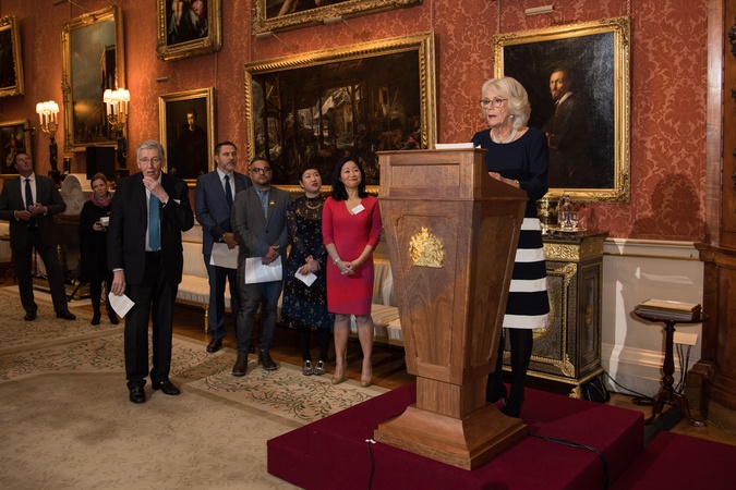 Ksiezna Camilla na przyjeciu dla zwyciezcow The Queen's Commonwealth Essay Competition