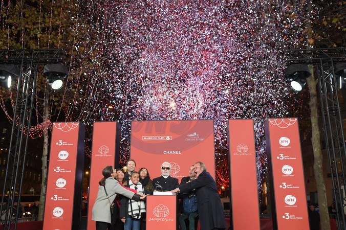 Karl Lagerfeld na rozswietleniu Pol Elizejskich w Paryzu