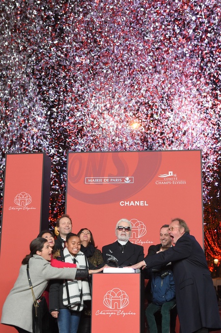 Karl Lagerfeld na rozswietleniu Pol Elizejskich w Paryzu