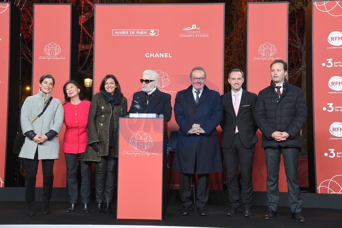 Karl Lagerfeld na rozswietleniu Pol Elizejskich w Paryzu