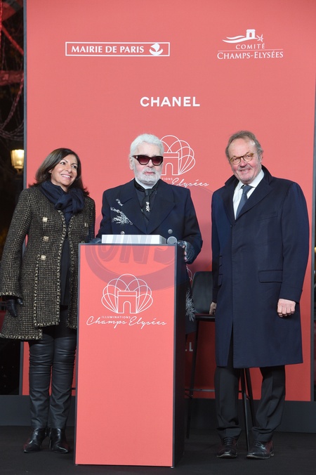Karl Lagerfeld na rozswietleniu Pol Elizejskich w Paryzu