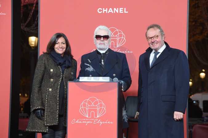 Karl Lagerfeld na rozswietleniu Pol Elizejskich w Paryzu