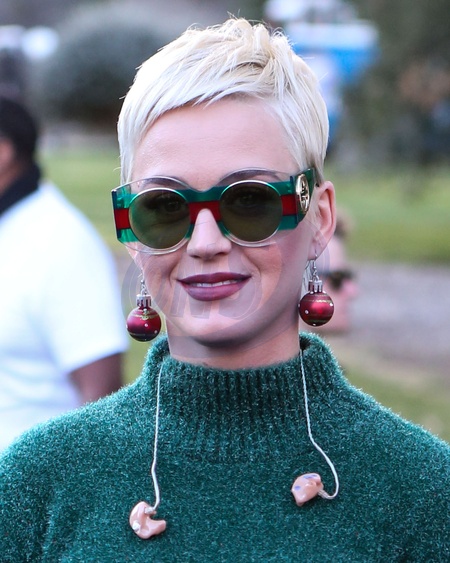 Katy Perry w swiatecznej kreacji, z bombkami w uszach
