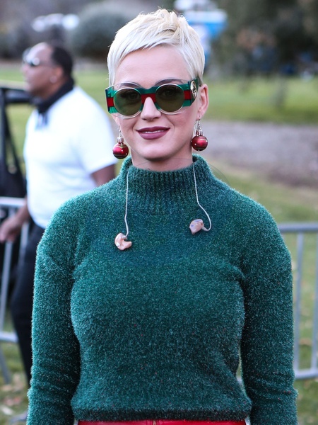 Katy Perry w swiatecznej kreacji, z bombkami w uszach