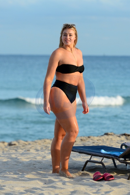 Iskra Lawrence w czarnym bikini na plazy