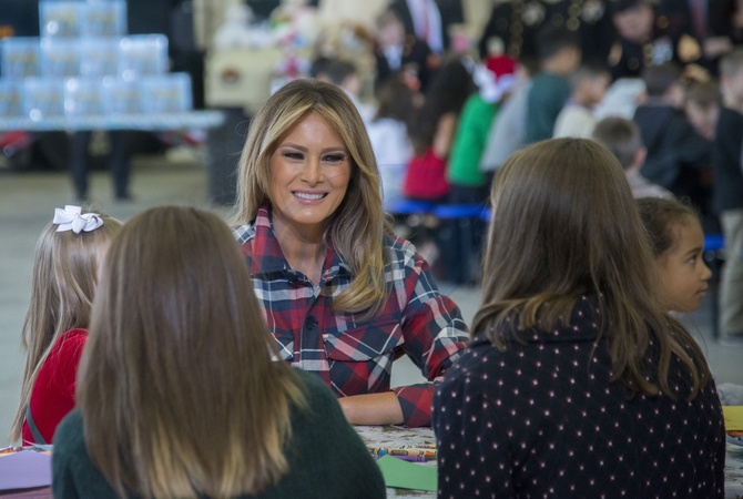 Melania Trump w koszuli w kratke w dorocznym programie Toys for Tots