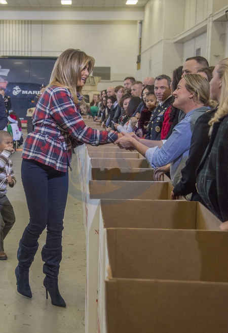 Melania Trump w koszuli w kratke w dorocznym programie Toys for Tots