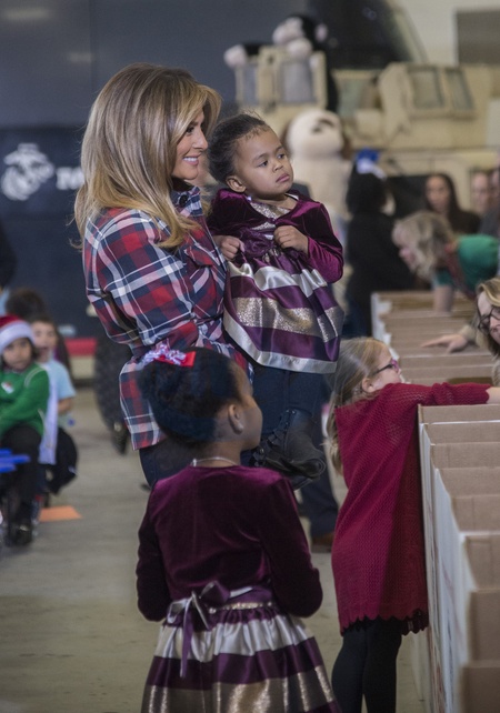 Melania Trump w koszuli w kratke w dorocznym programie Toys for Tots