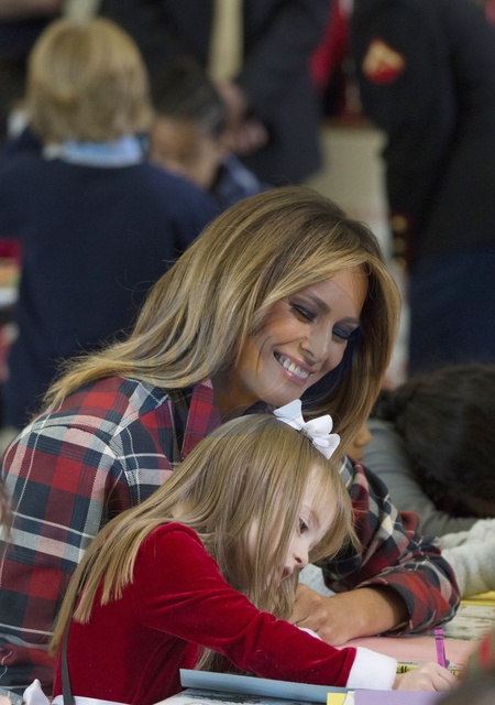 Melania Trump w koszuli w kratke w dorocznym programie Toys for Tots