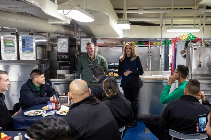 Melania Trump podczas wizyty na amerykanskim lotniskowcu