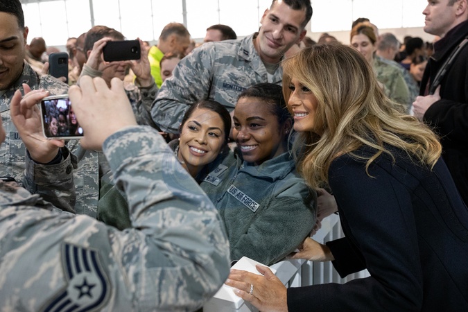 Melania Trump podczas wizyty na amerykanskim lotniskowcu