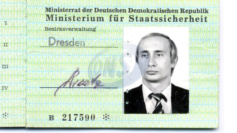 Mlody Wladimir Putin - tajna legitymacja policji Stasi schowana w szufladzie Dreznie