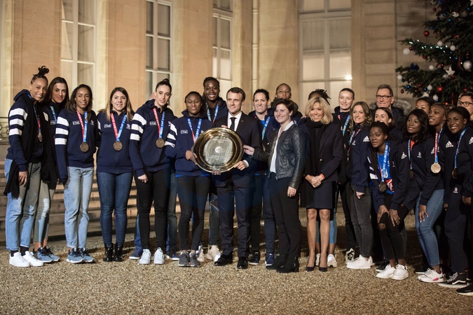 Macronowie spotkali sie z pilkarkami recznymi