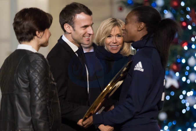 Macronowie spotkali sie z pilkarkami recznymi