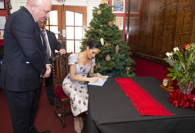 Ksiezna Meghan w letniej sukience na spotkaniu swiatecznym