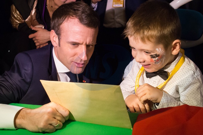 Macronowie na spotkaniu swiatecznym z dziecmi