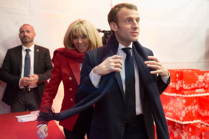 Macronowie na spotkaniu swiatecznym z dziecmi
