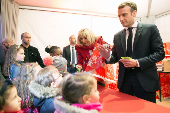 Macronowie na spotkaniu swiatecznym z dziecmi