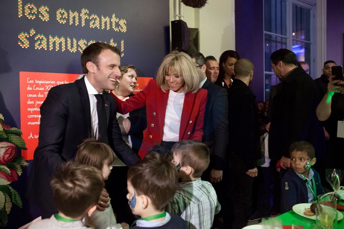 Macronowie na spotkaniu swiatecznym z dziecmi