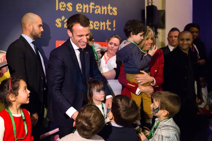 Macronowie na spotkaniu swiatecznym z dziecmi
