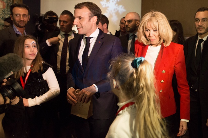 Macronowie na spotkaniu swiatecznym z dziecmi