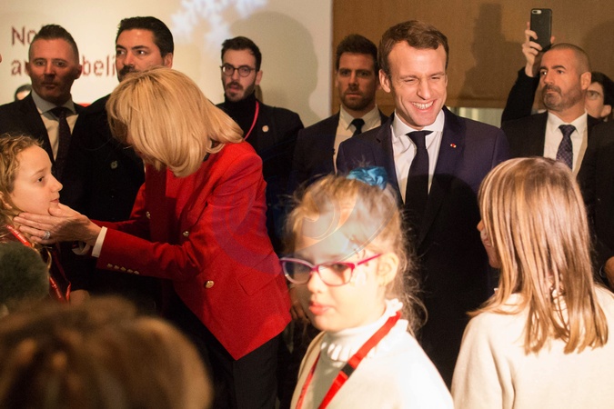 Macronowie na spotkaniu swiatecznym z dziecmi