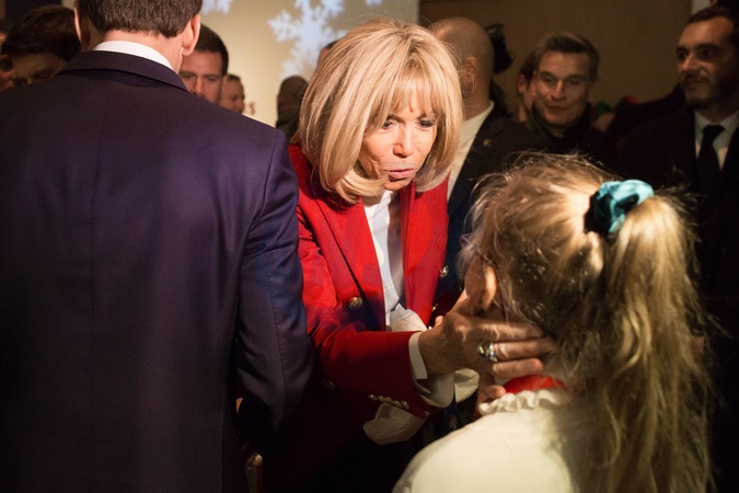 Macronowie na spotkaniu swiatecznym z dziecmi