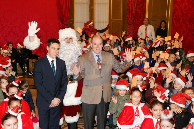 Ksiaze Albert i Louis Ducruet z dziecmi na spotkaniu swiatecznym