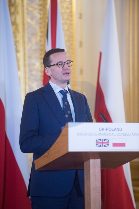 Konrad Morawiecki i Theresa May na wspolnej konferencji w Londynie