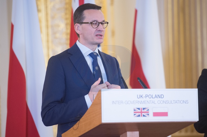 Konrad Morawiecki i Theresa May na wspolnej konferencji w Londynie