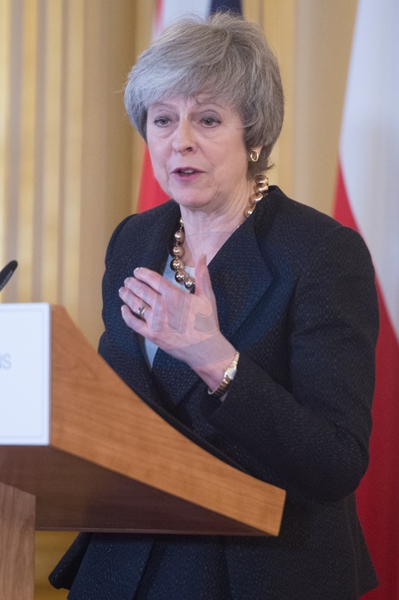 Konrad Morawiecki i Theresa May na wspolnej konferencji w Londynie