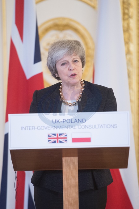 Konrad Morawiecki i Theresa May na wspolnej konferencji w Londynie