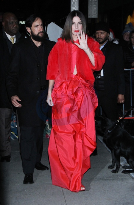 Sandra Bullock w czerwonej sukni na pokazie Bird Box