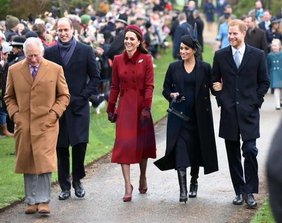 Brytyjska rodzina krolewska idzie do kosciola - Boze Narodzenie