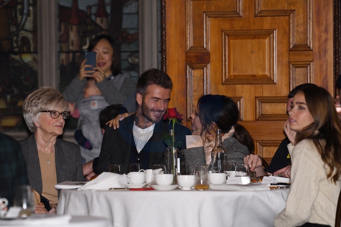 Victoria i David Beckham z mama na pokazie mody dla mezczyzn