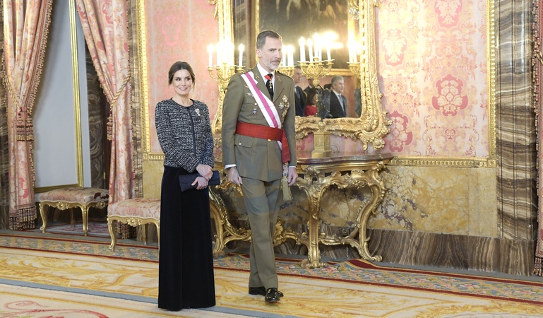 Krolowa Letizia i krol Filip podczas tradycyjnej parady wojskowej