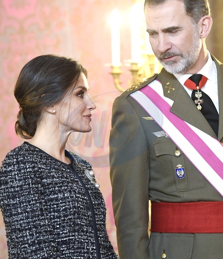 Krolowa Letizia i krol Filip podczas tradycyjnej parady wojskowej