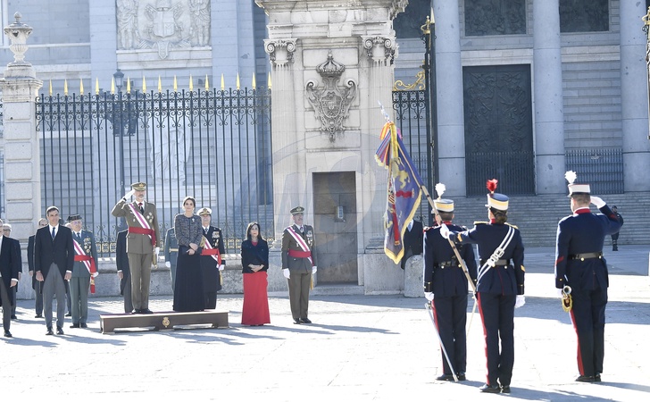 Krolowa Letizia i krol Filip podczas tradycyjnej parady wojskowej