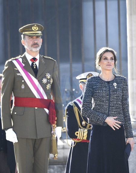 Krolowa Letizia i krol Filip podczas tradycyjnej parady wojskowej