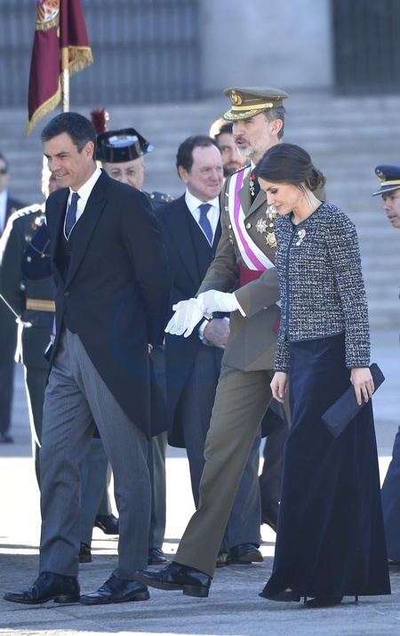 Krolowa Letizia i krol Filip podczas tradycyjnej parady wojskowej