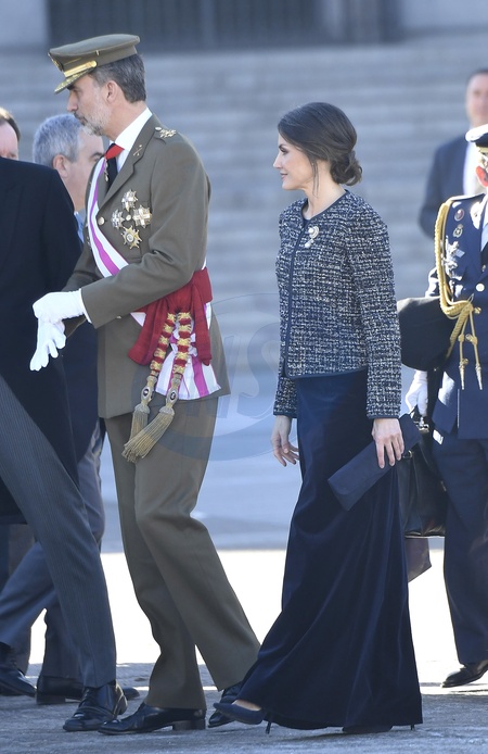 Krolowa Letizia i krol Filip podczas tradycyjnej parady wojskowej